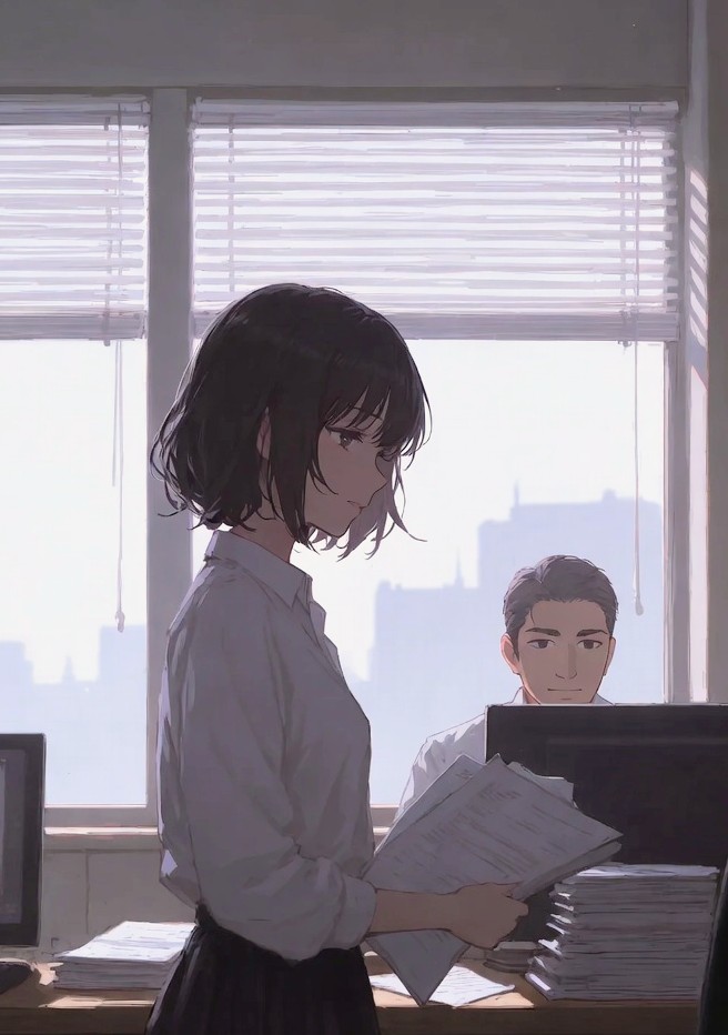 後輩の由佳が、書類を抱えたまま戻ってこない。さっきまで平然としていた顔を思い返すと、胸がざわつく。
