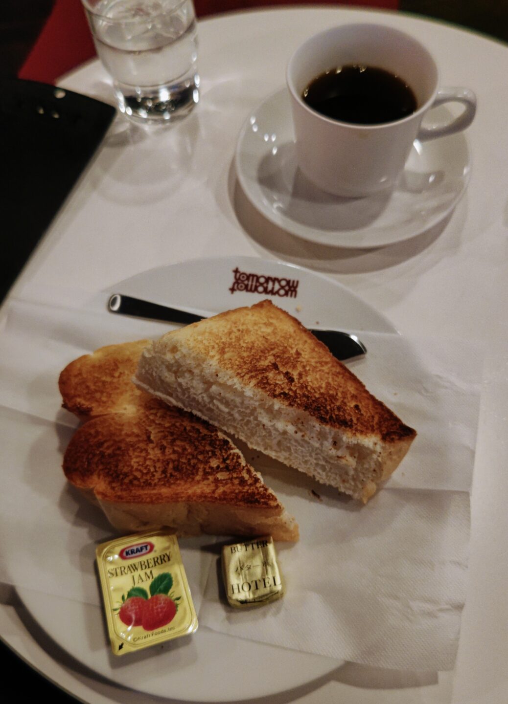 トーストとアメリカンコーヒーがテーブルに運ばれる